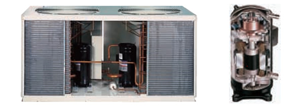 Scroll compressors are available from 5 to 20 tons with excellent reliabulity and high efficiency |